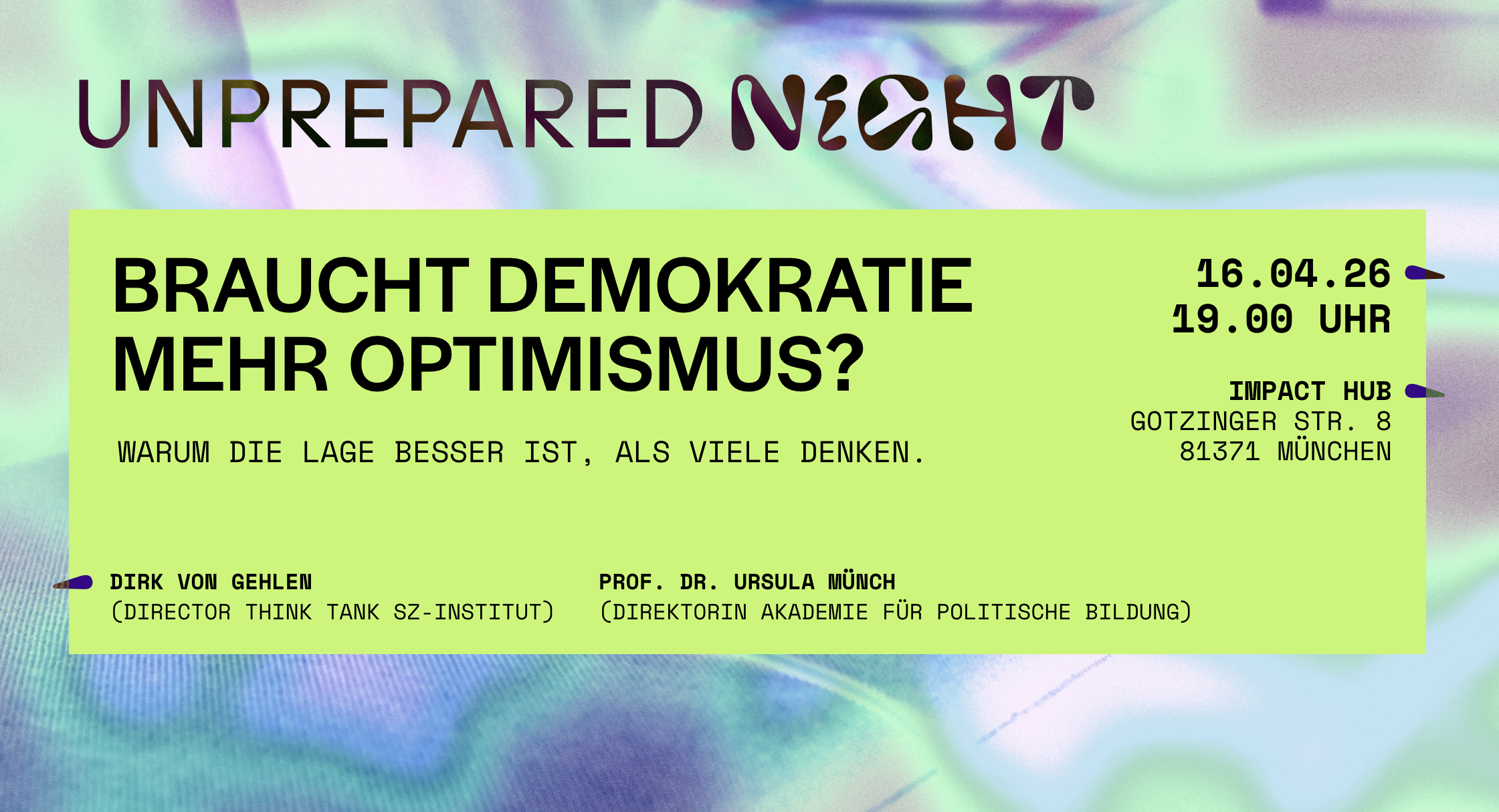 Unser nächstes Event steigt am 16. April. Sichere dir jetzt schon deinen Stuhl im Publikum.